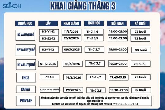 LỊCH KHAI GIẢNG CÁC LỚP THÁNG 3