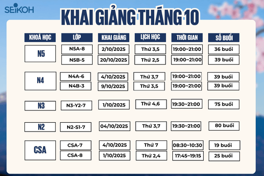 Lịch khai giảng tháng 10/2025 tại trung tâm tiếng Nhật SEIKOH